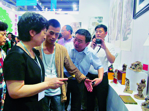 趙素萍對(duì)我市展出的泥塑、泥咕咕、裸眼3D產(chǎn)品、動(dòng)漫短片等表現(xiàn)出濃厚的興趣,希望參展企業(yè)在宣傳推介文化產(chǎn)品的同時(shí),積極學(xué)習(xí)外地在文化產(chǎn)業(yè)發(fā)展方面的經(jīng)驗(yàn)和做法,不斷完善提升,為我市乃至全省文化產(chǎn)業(yè)的大發(fā)展大繁榮提供強(qiáng)有力的支持。在河南三陽光電有限公司展臺(tái)處,趙素萍觀看了裸眼3D產(chǎn)品展示,認(rèn)為該項(xiàng)目科技含量高、市場潛力大,鼓勵(lì)企業(yè)加快開發(fā)更舒適、更逼真的產(chǎn)品,早日實(shí)現(xiàn)產(chǎn)品進(jìn)入家庭的目標(biāo)。在魂子泥塑藝術(shù)有限公司展臺(tái)處,趙素萍認(rèn)真察看該公司的展品,并與公司負(fù)責(zé)人、河南民間工藝美術(shù)大師宋慶春親切交談,鼓勵(lì)他進(jìn)一步將傳統(tǒng)文化與現(xiàn)代創(chuàng)意相融合,做出更多更好的工藝品。趙素萍還觀看了市華寶動(dòng)漫有限公司出品的動(dòng)漫短片《小鶴仙與大水怪》,對(duì)該公司的創(chuàng)意及制作水平給予充分肯定。