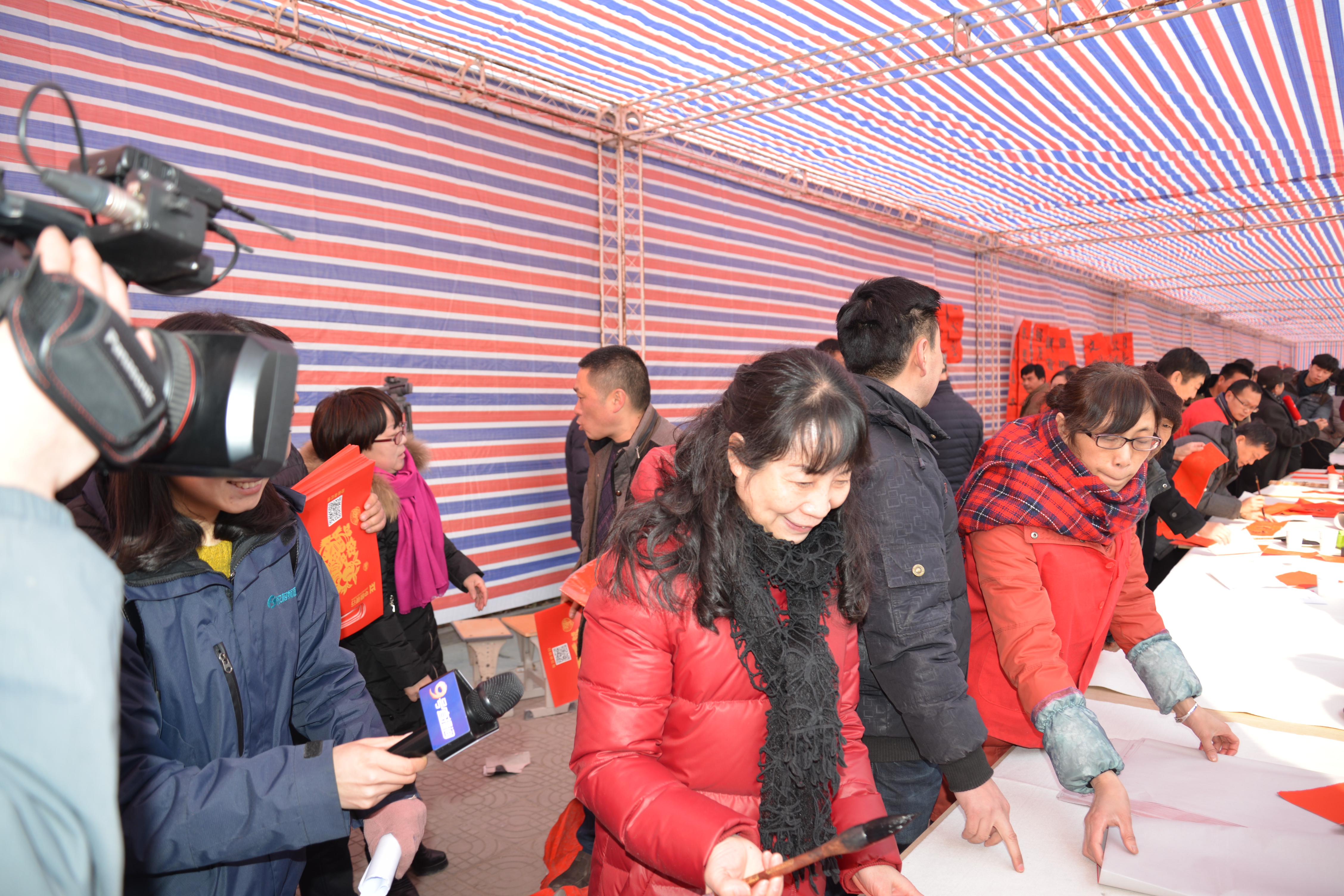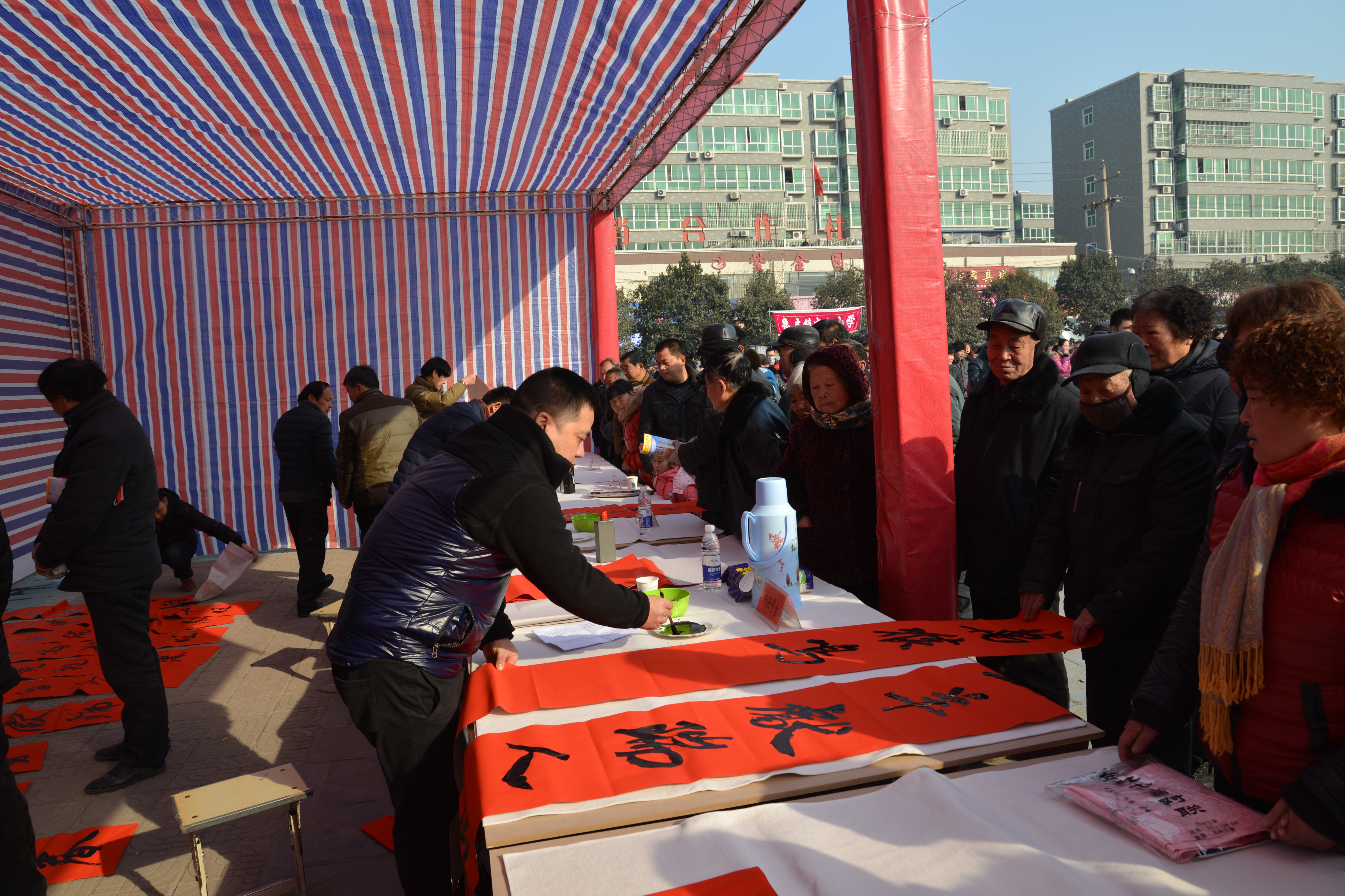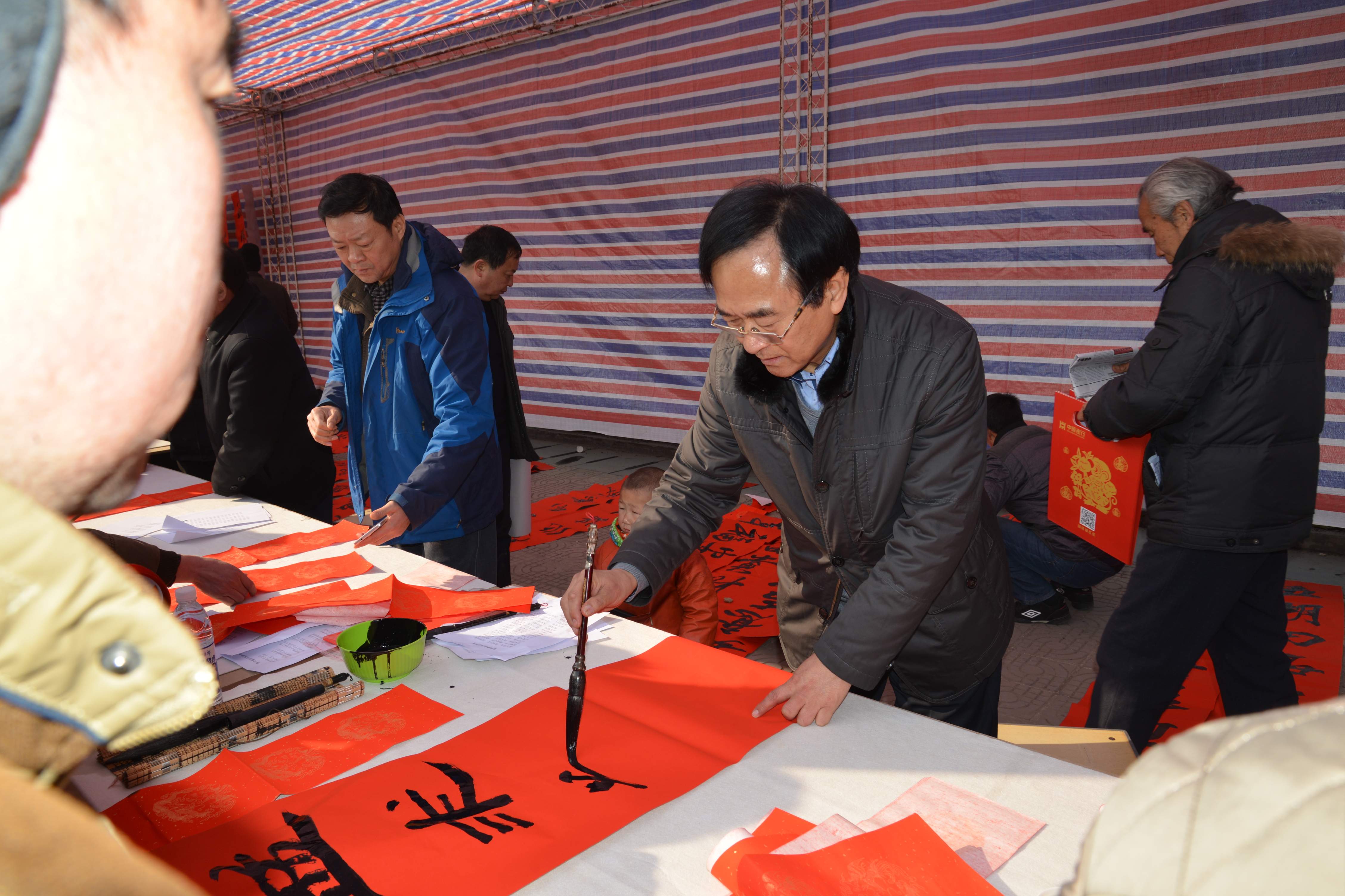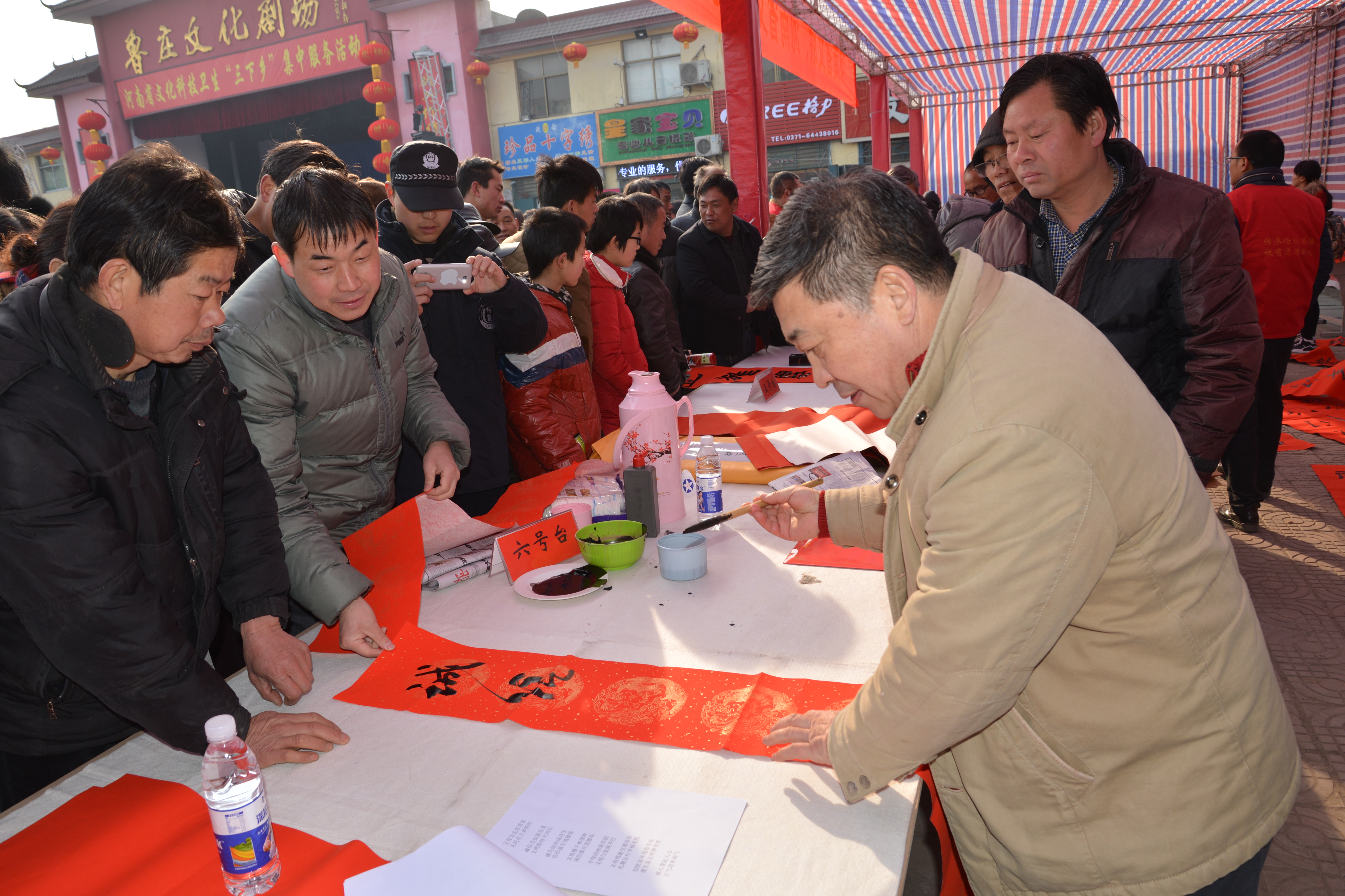 隨后,二十多名省內(nèi)著名書法家揮毫潑墨,應(yīng)邀為村民書寫春聯(lián),受到村民的歡迎,魯莊鎮(zhèn)村民陳大爺說,“這寫的真不錯,比買的好,得好好收藏著?!?
