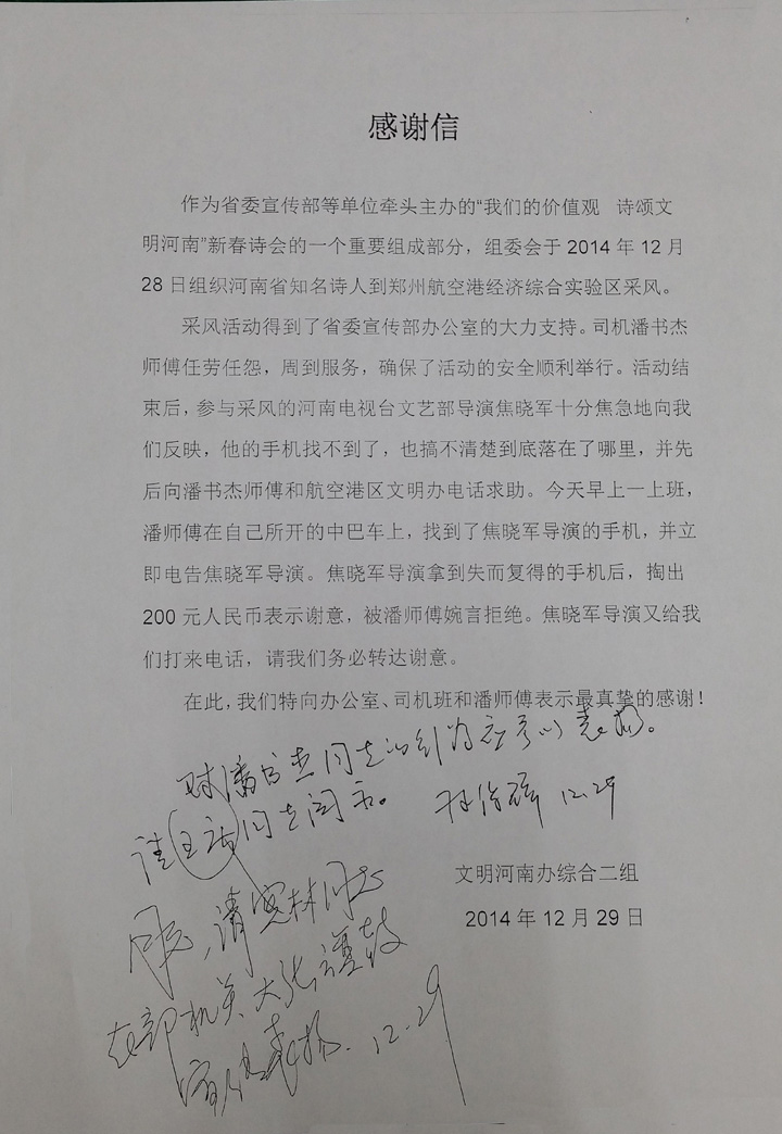 在鄭州航空港經(jīng)濟(jì)綜合試驗(yàn)區(qū)活動(dòng)中受表揚(yáng)