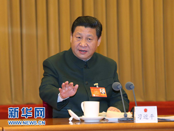 3月11日,中共中央總書記、國家主席、中央軍委主席習(xí)近平出席十二屆全國人大二次會(huì)議解放軍代表團(tuán)全體會(huì)議并發(fā)表重要講話。新華社記者李剛攝