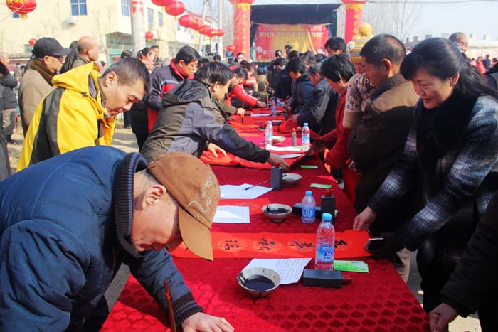 昔日古戰(zhàn)場(chǎng),今朝更吉祥。2015年2月6日上午,由省委宣傳部和省文聯(lián)、省政府金融辦主辦,鄭州市委宣傳部、河南省文藝家志愿者協(xié)會(huì)、河南省省直書畫家協(xié)會(huì)協(xié)辦的全省“踐行價(jià)值觀 新年送春聯(lián)”活動(dòng)啟動(dòng)儀式,在中牟縣官渡鎮(zhèn)官渡橋村舉行。省委宣傳部常務(wù)副副長(zhǎng)王耀同志在啟動(dòng)儀式上講話,副部長(zhǎng)王慶同志主持了儀式。省金融辦副主任李栓成、鄭州市委常委、宣傳部長(zhǎng)王哲等也參加了活動(dòng)儀式。
