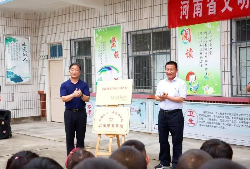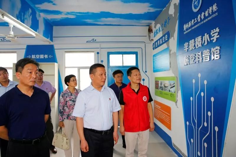 7月11日,河南省委宣傳部常務(wù)副部長(zhǎng)蘇長(zhǎng)青、副部長(zhǎng)張曼如、省文明辦專職副主任王飛等同志帶領(lǐng)部機(jī)關(guān)有關(guān)人員,與鄭州航空管理學(xué)院有關(guān)領(lǐng)導(dǎo)和志愿者師生一行,分別到省委宣傳部幫扶貧困村周口市西華縣半截樓村和漯河市舞陽縣余莊村,為省文明辦、鄭州航院援建的航空科普館和鄭州航院志愿服務(wù)基地舉行揭牌儀式。